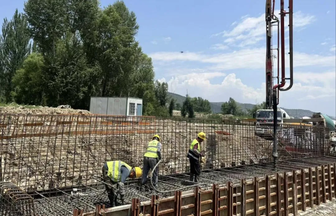 施工现场,工人师傅们在作业区内有条不紊地完成绑扎、校验等工序,混凝土输送泵车将混凝土精准注入桥台模板,浇筑过程一气呵成。据该项目负责人介绍,项目管理团队创新采用“双线并行”策略推进建设,在质量把控上严格执行原材料入场全项检测机制,落实工序节点“逐环节验收”制度,通过全流程闭环管控为工程质量保驾护航。在进度攻坚方面,项目管理团队通过增设作业班组扩大作业面、优化机械台班调配提高设备利用率、根据天气变化动态调整施工计划等措施,在严守安全红线的前提下,全力推动工程建设提速增效。目前,该项目路基工程完成70%,桥梁工程完成40%,涵洞工程完成60%,排水工程完成50%。